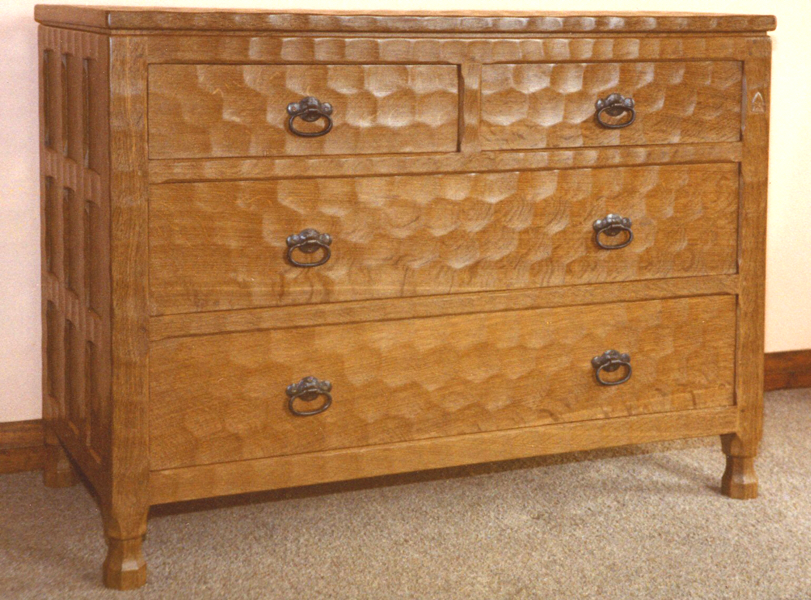 Adzed oak chest of drawers |