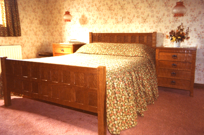 Fumed oak bed and large bedside cabinets |