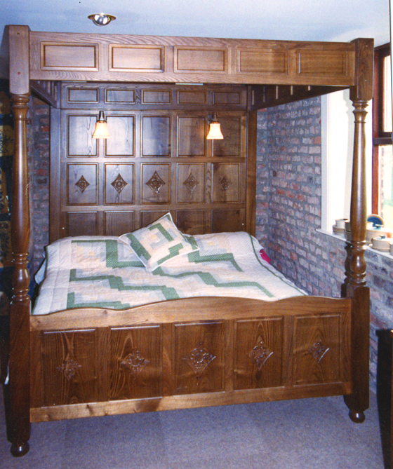 6ft 6in four poster bed with carved panels |