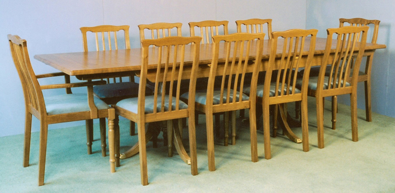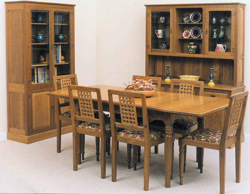Tailor made to suit your home, tables can be fixed or extending, cabinets in any size and configuration and chairs in any style and upholstered in your choice of fabric or leather, all in a choice of hardwoods to complement any room.