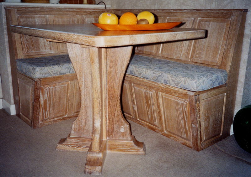 Corner seat & table in limed oak |